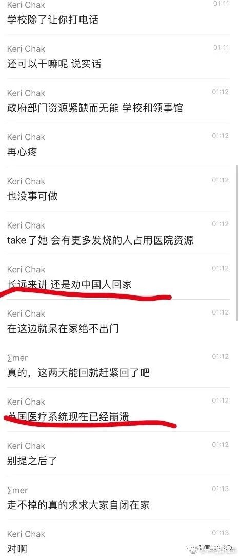 感冒生病的中国留学生们,你们看到了吗?如果你们感冒了,不要恐慌,不要惊慌失措,不要违反英国医疗系统的建议和规矩,擅自叫救护车跑到医院去,不要!如果你们非要认为英国的医疗系统是没救了,瘫痪了,缺钱了,或者不给你治病,你要死了,既然你这么不相信英国的医疗,那截图里的那个留学生说得对,就请你回中国去吧。毕竟在中国,从机场就开始排查病人了,这多让人放心啊!所以如果你们不相信英国,觉得英国的医院弱爆了,那就请你回中国去接受治疗吧!!