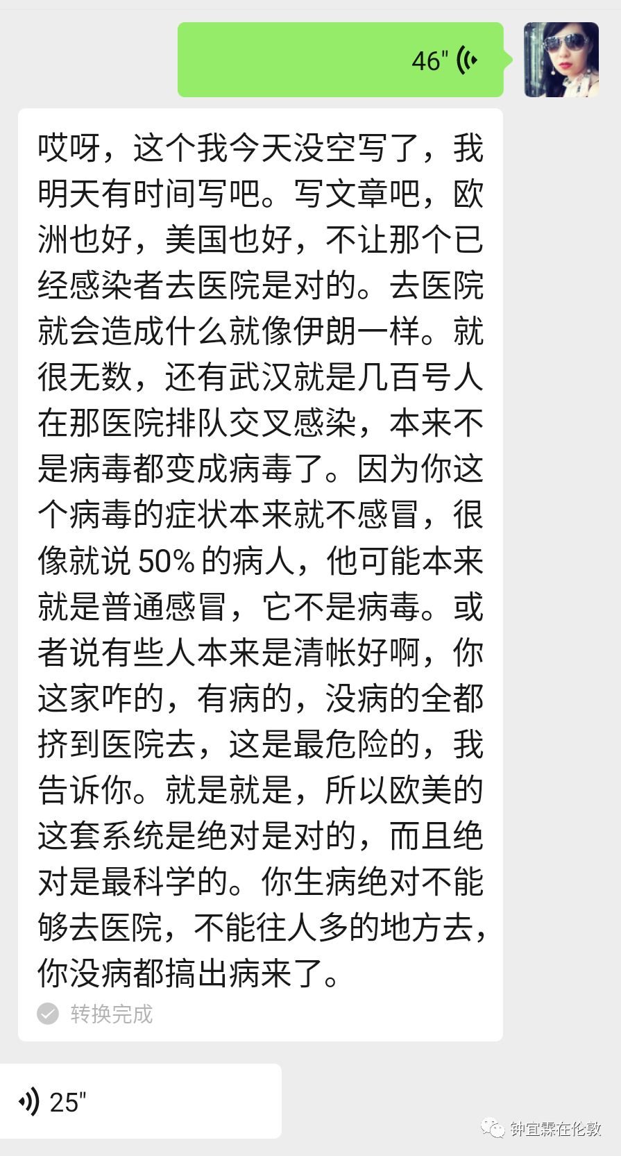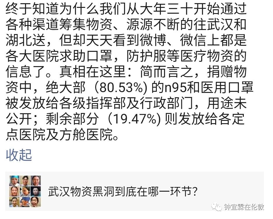 钟宜霖:我那天文章结尾说了,这个病毒首先是从中国传到国外的。现在国外的华人往中国跑,你难道还怪国外的这些国家?你不怪怪你们自己。好奇怪呀,你自己不首先封国把中国人去国外的路封死,把病毒给阻断在中国,然后现在还反过头来,因为世界各国的华人回国,你还来怪这些英法美这些政府?这不是神经病吗?