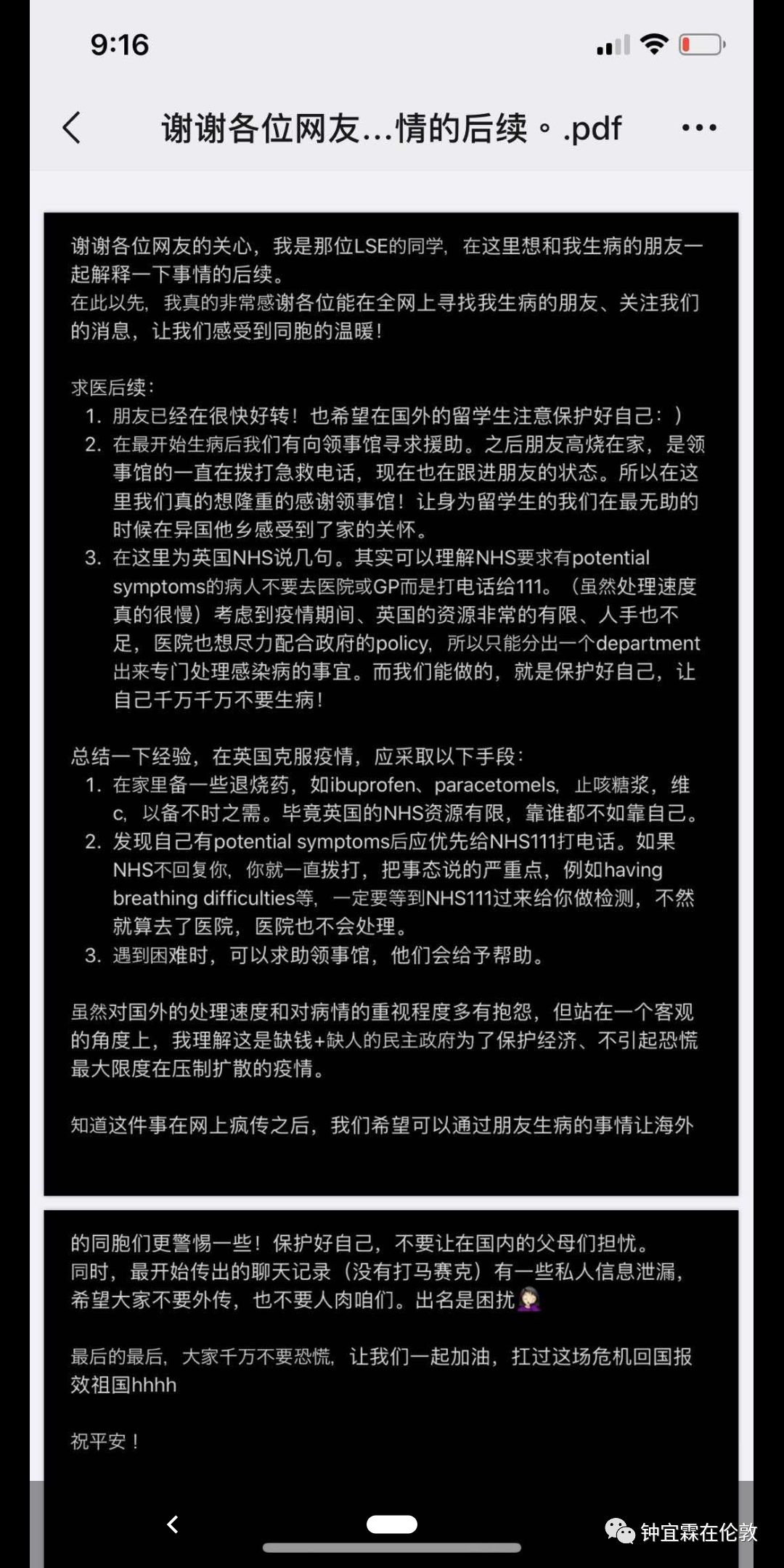 说明白这一点以后,各位中国留学生现在是不是至少能先明白这一个最基本的道理:就是在有流行病毒的非常时期,一定要遵循英国NHS的就诊规则,重要的话说三遍:不能去医院,不能去医院,不能去医院!!