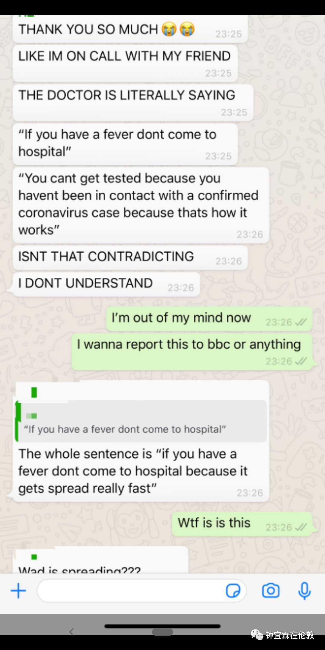 OK,现在先看我当时发给朋友(也是英国留学生的学生家长,所以她才会这么害怕和紧张,赶紧跑过来问我)第一时间的回复: