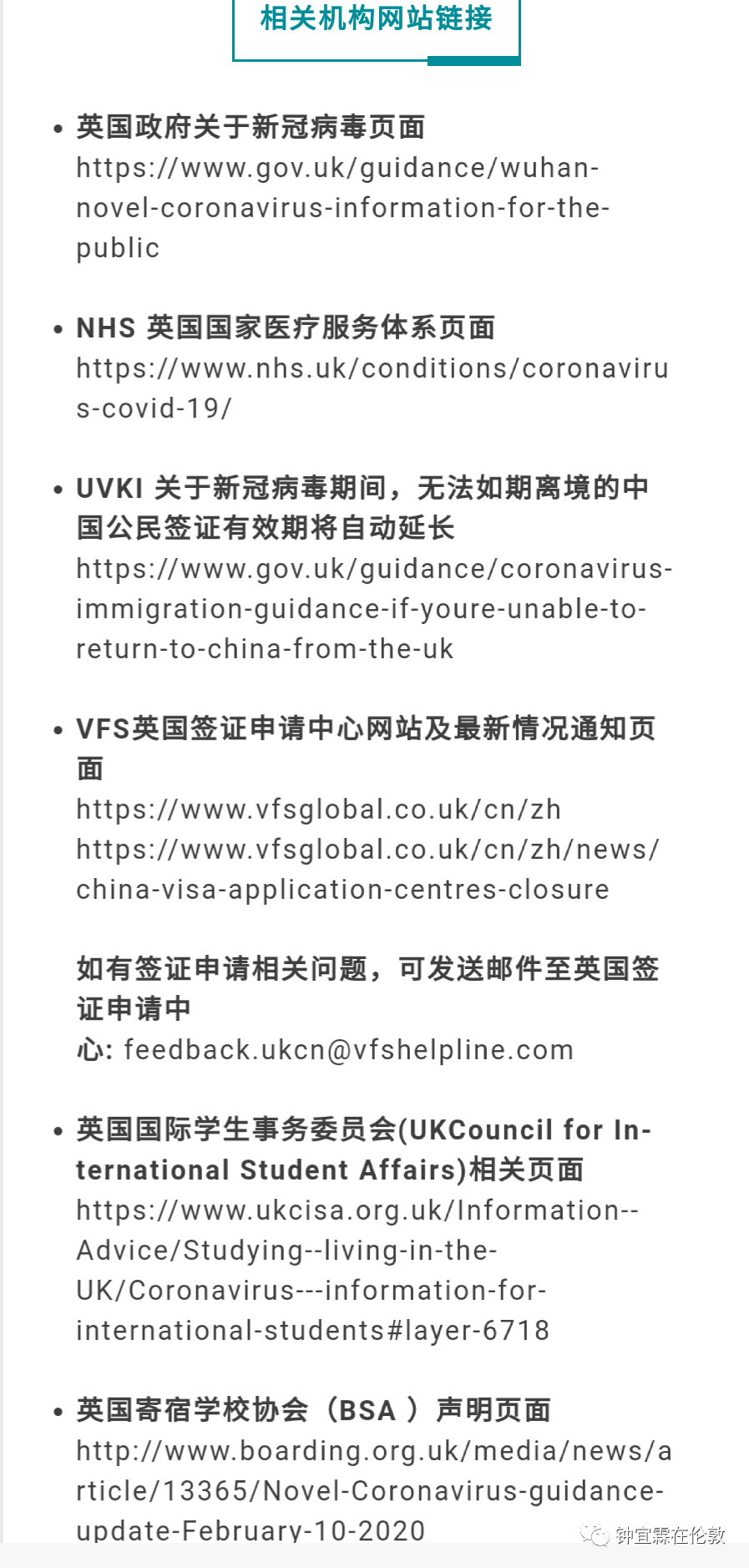 最后是关于在英华人和留学生的撤侨信息和英国签证和大使馆的各种联系方式: