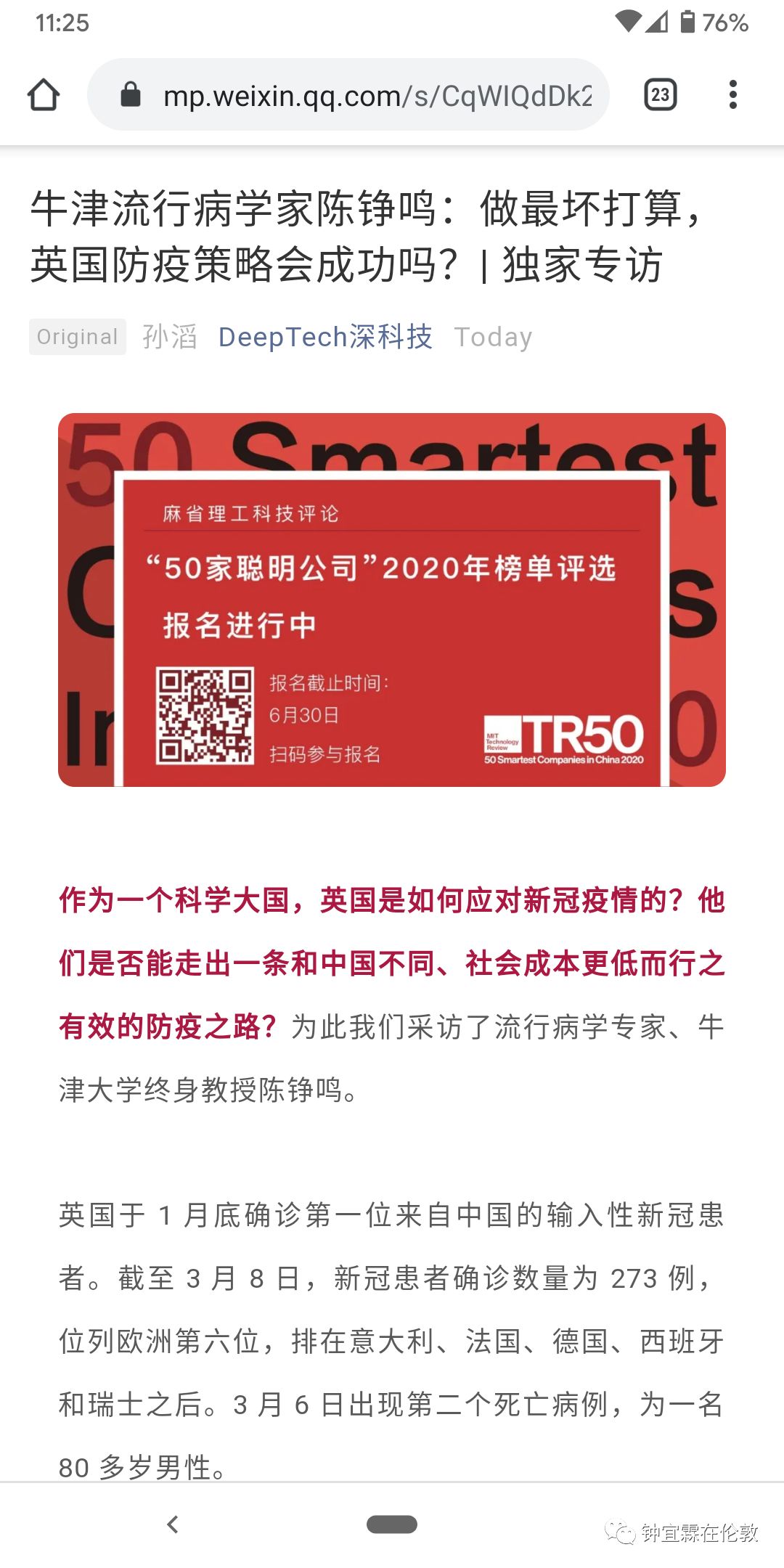 英国篇:《牛津流行病学家陈铮鸣的独家专访》