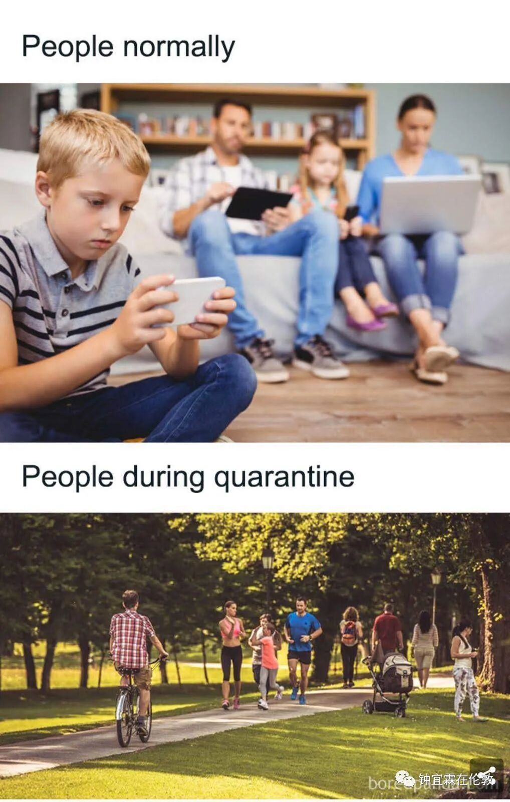 上图的第一张是“大家在平时的时候”,第二张则是“大家在封城的时候”