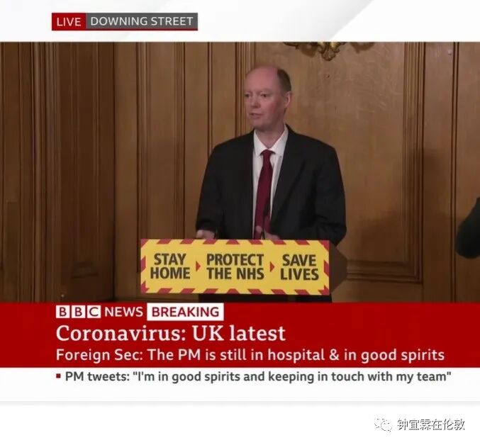 这是今天(2020年4月6日)首相府新闻发布会的现场视频的截图,请注意亮点在底下的最后一行:这个操心得要死的首相啊。。。