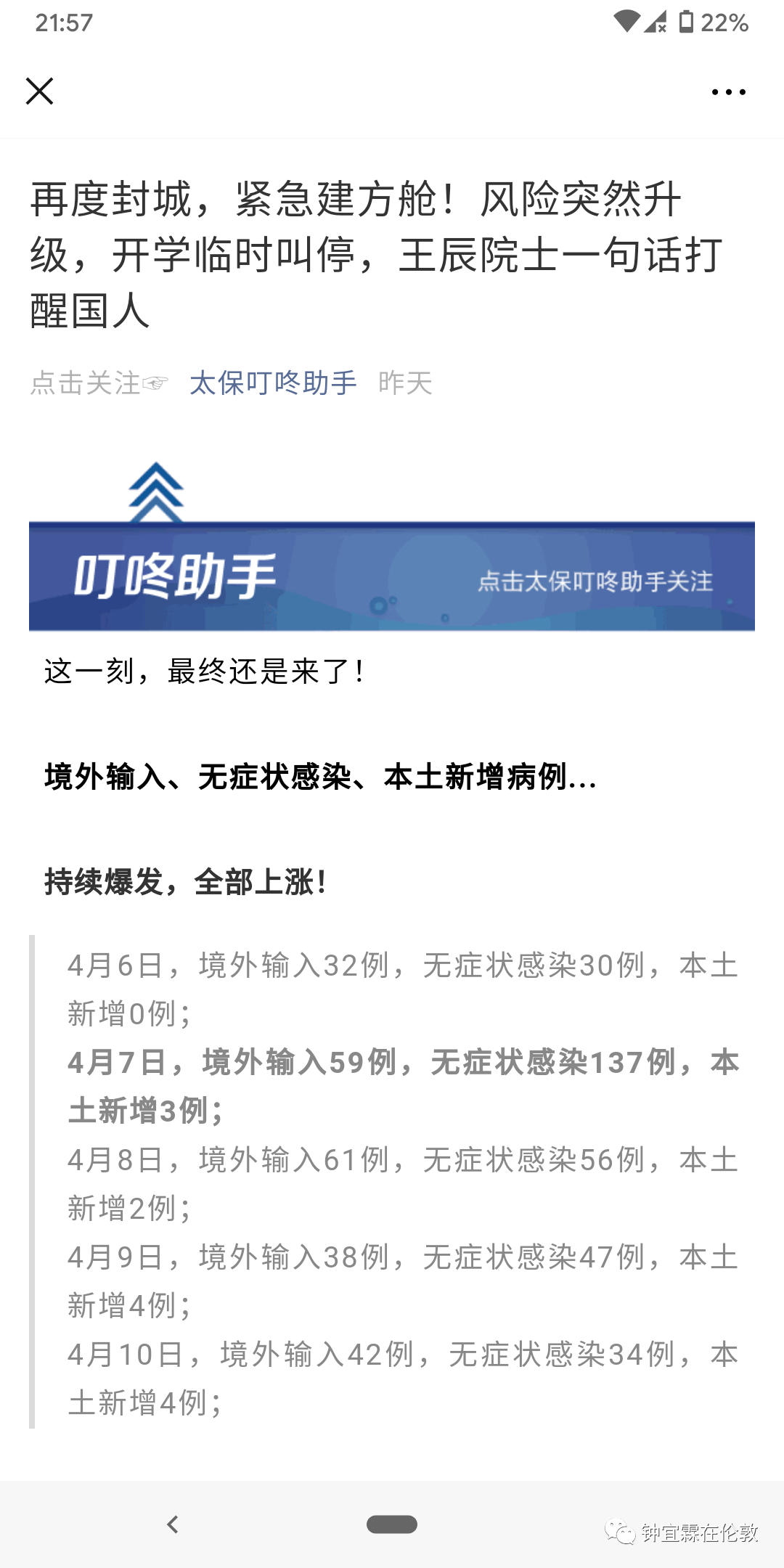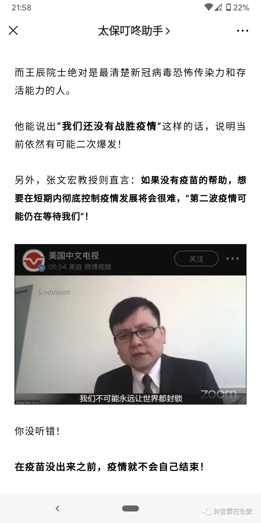 所以还是俗话说得好:事实胜于雄辩。现在大家知道了,封城根本没有用,因为就像我一个月前说的,一旦解封,复工复产,病毒又会卷土重来。现在,你怎么办?而且我当时是不是就说过和上图结尾张文宏医生说的那句话一模一样的话?我在一个月前说的是:“你总不可能封全世界人民一辈子吧?”同样的一句话,我说出来就被骂是抹黑中国的公知,张文宏说出来就是爱国的大好人。。唉。。