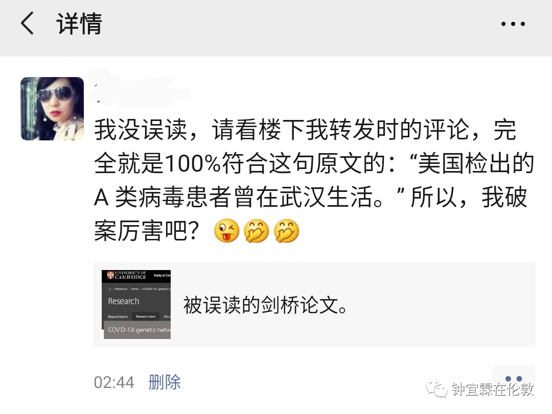 因为就在我转发完上面这篇纯属造谣的公号文以后,辟谣的文章立刻及时出现,作者在查证该剑桥大学论文的英文原文后,狠狠地打了上面那篇造谣文章作者的脸。简单截图如下: