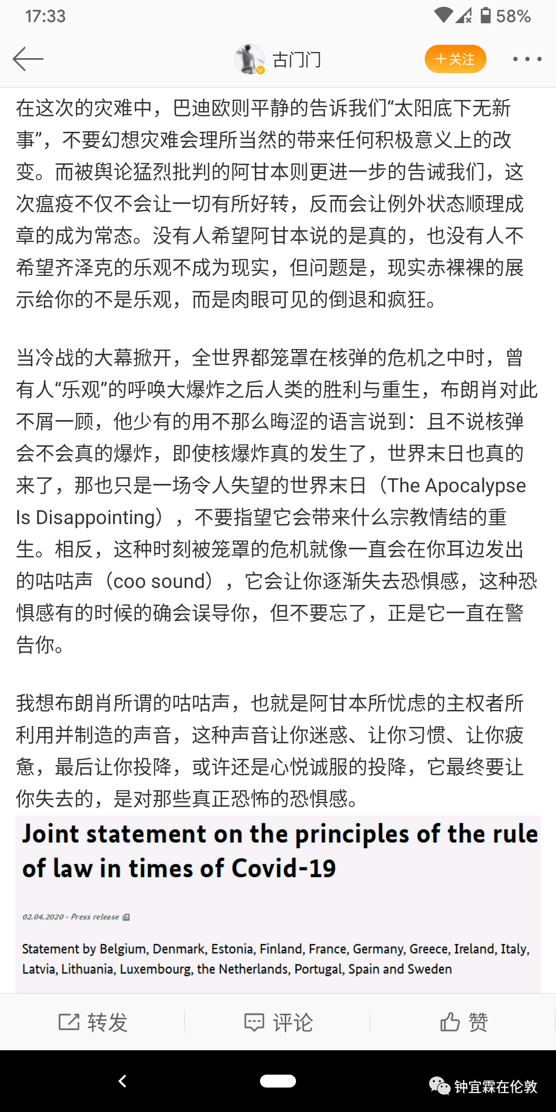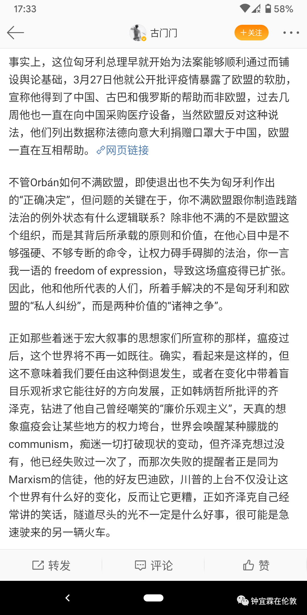 另外还要解释一下的是,上次我预告说要写一关于篇病毒与全球化的文章,但因为我第二天就被微信禁言,所以一直都没写。不过我已经在网上看到了类似观点的非常精彩的文章,比如下面我转发的这篇。由于此文无法完整发出,所以我在这里只节选了原文的第一段和最后一段谈全球化的部分。